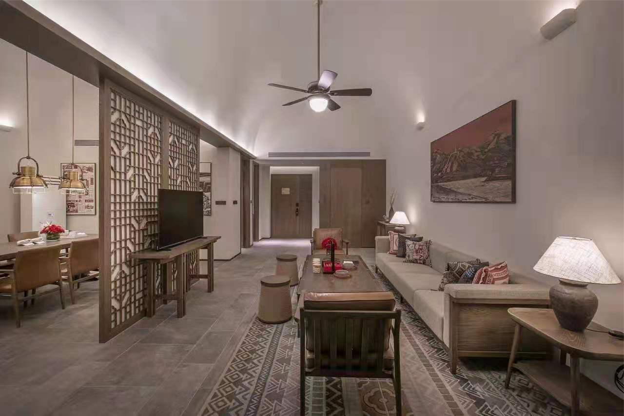 酒店拥有178间颇具陕北风情的客房,每个房间都能一览碧波蓝天与黄土高坡交相辉映的延湖美景。其中最具特点的是以陕北传统生土窑洞原型设计的特色窑洞房。酒店所用家具由AG真人国际提供定制,房间拱顶保留了原生态民居特点,房内设有北方土炕床和温润的仿古木质家具,3米多宽的土炕床带来地道陕北生活方式体验又兼顾现代酒店的舒适感。通过大面积白色与木色的应用,配合现代布光手法,在增加了自然和谐之感的同时,为传统元素增添了不俗的现代化氛围。